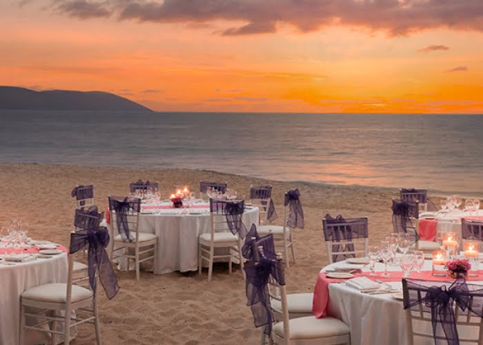 If you would like your wedding reception indoors, they offer a glamorous ballroom fit for a wedding queen. Many couples worry about outside people strolling along the beach during their ceremony or reception event. Hyatt Ziva beach has mountains on both sides, keeping the beachfront area very private for weddings.