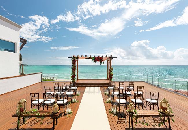 The Hilton Playa del Carmen stands out as a luxurious all-inclusive adult-only resort, perfect for couples looking for an exclusive and romantic destination wedding. With its prime location in the heart of Playa del Carmen, the resort offers breathtaking views of the Caribbean Sea, complemented by white sand beaches that create a dreamy backdrop for any wedding ceremony.